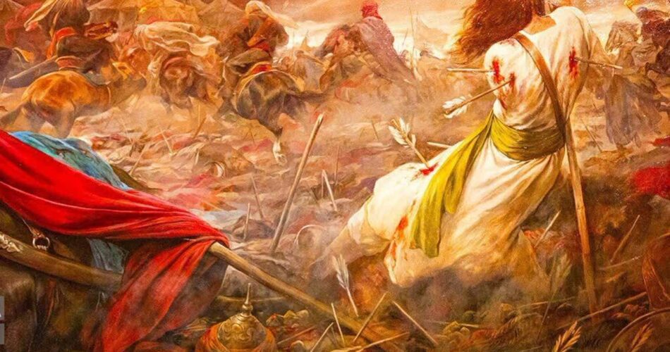گرد و خاکی بلند شد ناگاه، دست و پا می زند کسی آنجا🥀 رقص شمشیر و نیزه می بینم، خنجری خونچکان رود بالا🥀